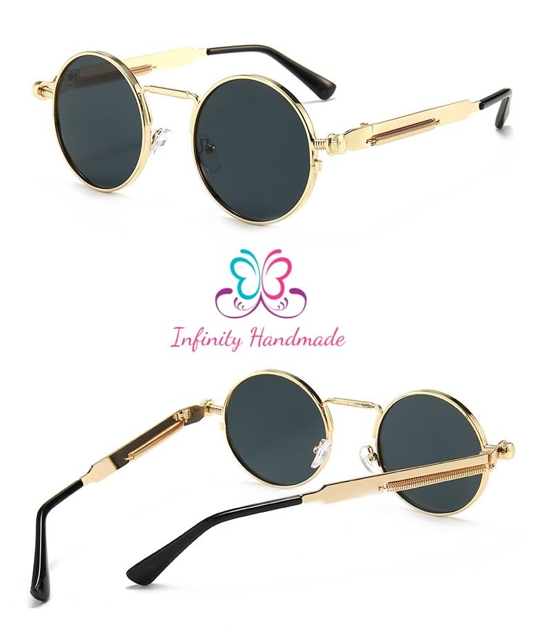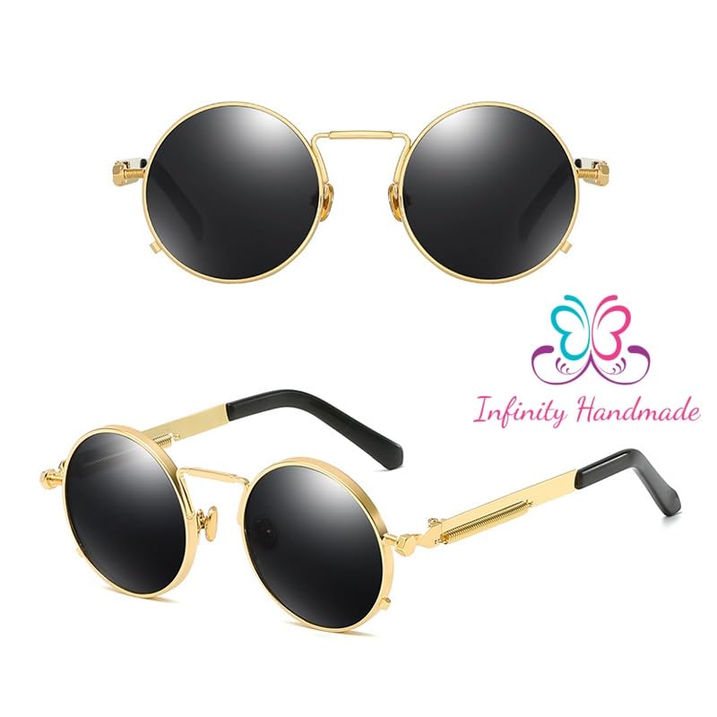 Generic - نظارات شمسية عصرية بتصميم بانك للرجال باطار معدني دائري ريترو للنساء للحماية من الاشعة فوق البنفسجية 400 بائع حصري انفينيتي مصنوع يدويا متعدد الالوان