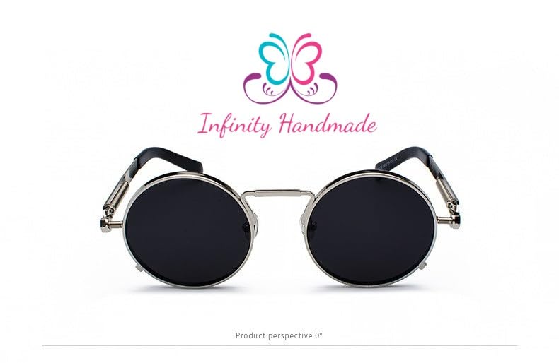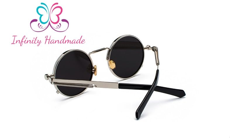 Generic - نظارات شمسية عصرية بتصميم بانك للرجال باطار معدني دائري ريترو للنساء للحماية من الاشعة فوق البنفسجية 400 فضي واسود
