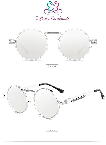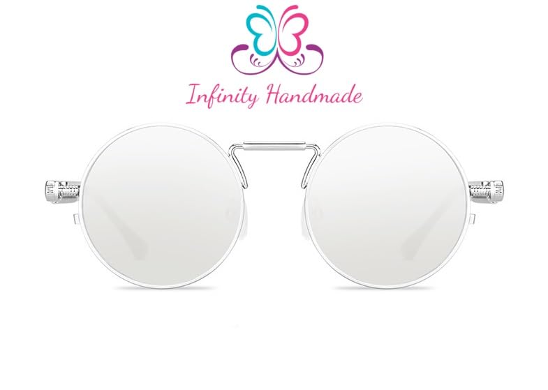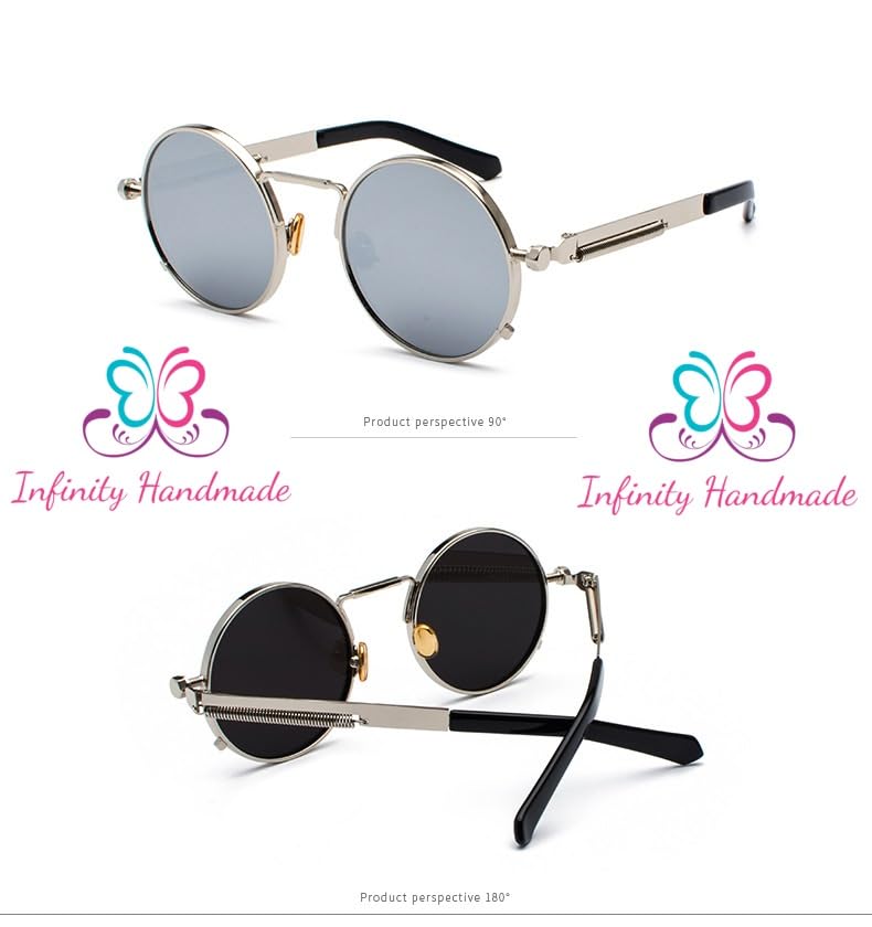Generic - New Fashion Designer Fashion Punk Style Sunglasses Men Retro Round Metal Frame Women Sun Glasses Fashion Eyewear UV protection 400 Full SILVER Seller's Exclusive InfinityHandmade