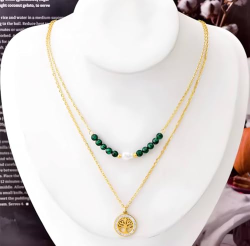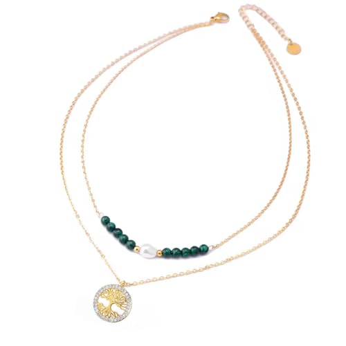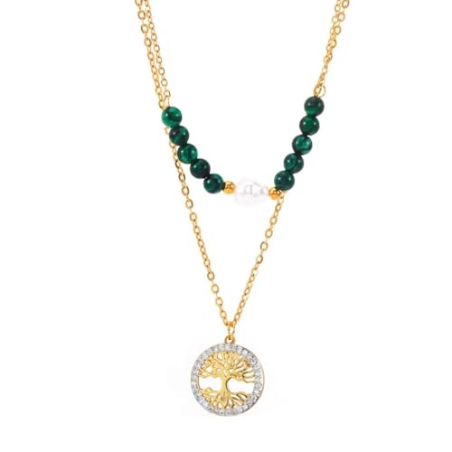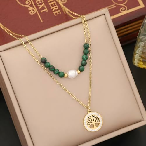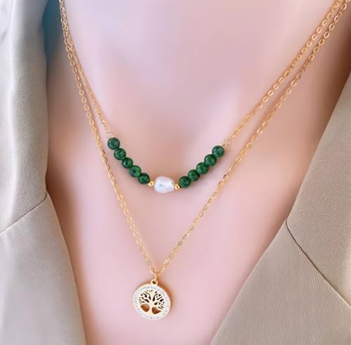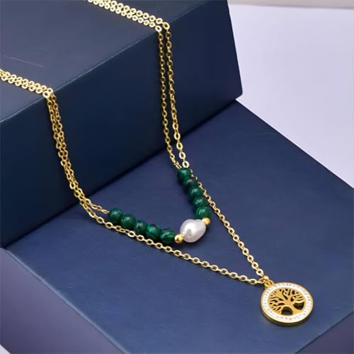Generic - New Fashion Necklace Fine Jewelry 2-Layer Pearl Stones Tree Shape Charms Chain Choker Necklaces Pendant For Women Jewelry Gift