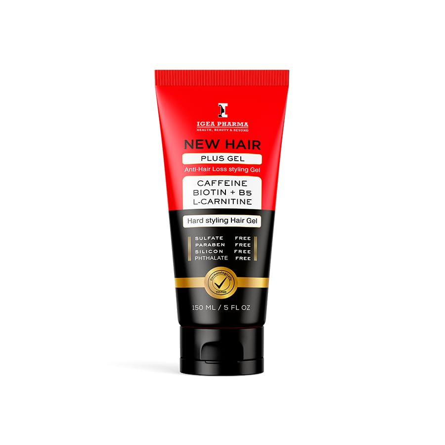 Igea - New Hair Plus Gel – Hard Hold Styling Hair Gel, Alcohol Free, with Caffeine, Biotin, L-Carnitine & Vitamin B5, Non-Drying, Odorless, 150 ml