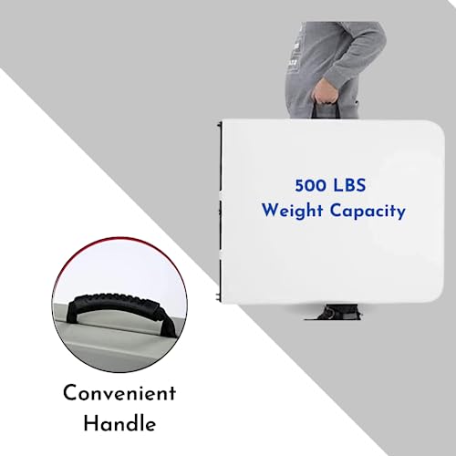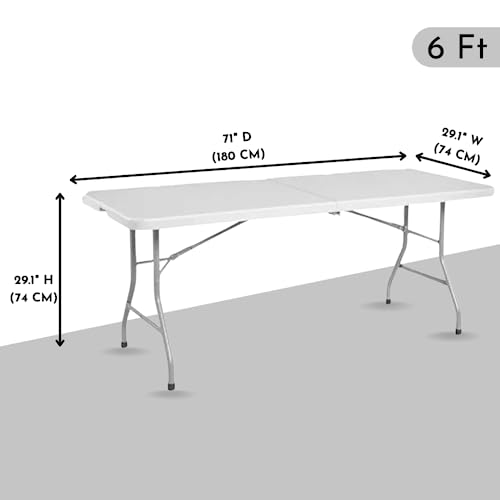 - EASY TO CARRY: Our 6-foot center table folds in half so you can carry it virtually anywhere. The blow-molded polyurethane top features a practical handle for more portability. To legs fold under the table for a more compact design.