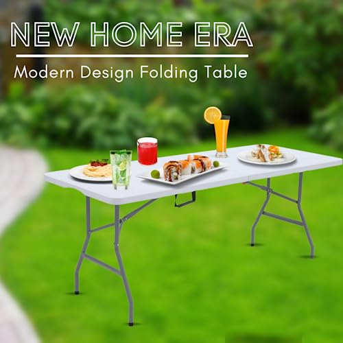 New Home Era - New Home Era Fold Up Table – 6 ft Plastic Folding Table for Picnics, Parties, Camping – Outdoor Table with Carrying Handle – Bi-Fold Rectangular Design – Lightweight and Durable