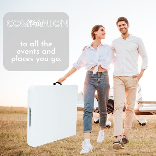 - FOR ANY EVENT: Use this fold up table at outdoor parties, weddings, bridal showers, or camping trips. The table top is waterproof and stain-resistant so you can easily wipe it clean. The legs feature protective caps for more stability, but also to protect the floor from scratches and marks.
