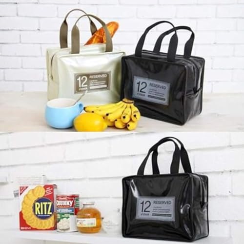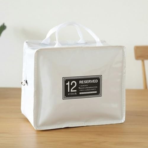 Generic - New PVC Waterproof Lunch Bags Women Portable Functional Canvas Stripe Insulated Thermal Food Picnic Cooler Lunch Box Bag 23 * 19cm - white