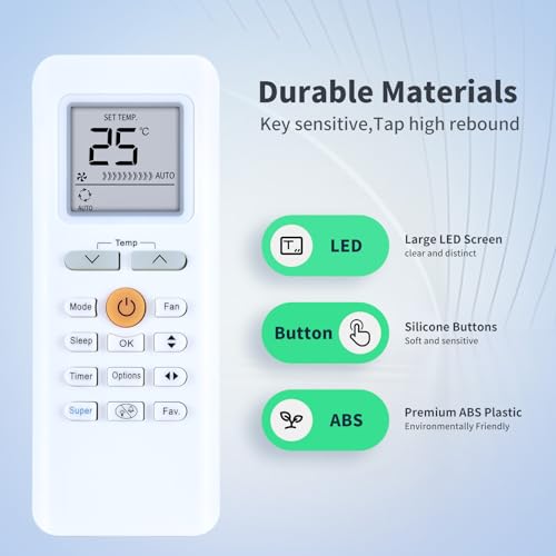 - ✔【NO SETUP REQUIRED】Simple universal remote for MIDEA Blanc Air Conditioner tv controller, small and compact size makes this remote control easy to grip and uneasy to slip. Easy to use, No programming or setting up required. Simply insert batteries and it worked immediately. Note: 2 x AA batteries are not included.