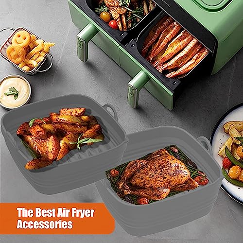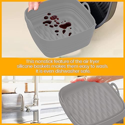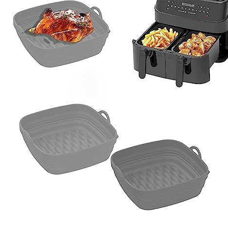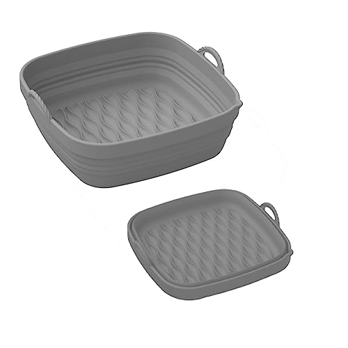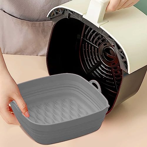 SELLD - بطانة قلاية سيليكون مربعة مقاومة للحرارة – مناسبة للقلاية الهوائية والفرن والميكروويف – سهلة التنظيف ومطوية – خالية من مادة بيسفينول أ – قابلة لإعادة الاستخدام، للطهي والخبز، مقاس 20.3 سم، رمادي فاتح