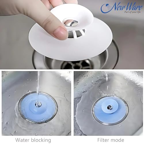 NEW WARE - NEW WARE (Pack of 2) Silicone Stopper and Filter Drain Stopper/Strainer/Hair Catcher for Bathroom/Wash Basin/Kitchen Sink/Bathtub Sealer Cover (Standard Size 4 Inch - Random Colour)