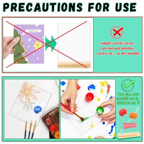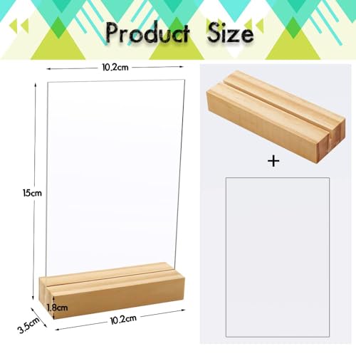 Newbested - 8 Pack Blank Clear Acrylic Table Sign with Wooden Stands, 4 x 6 Inch Top Menu Table Number Display Picture Stand Acrylic Sign Holder for DIY Name Card Gifts Event Party Decoration