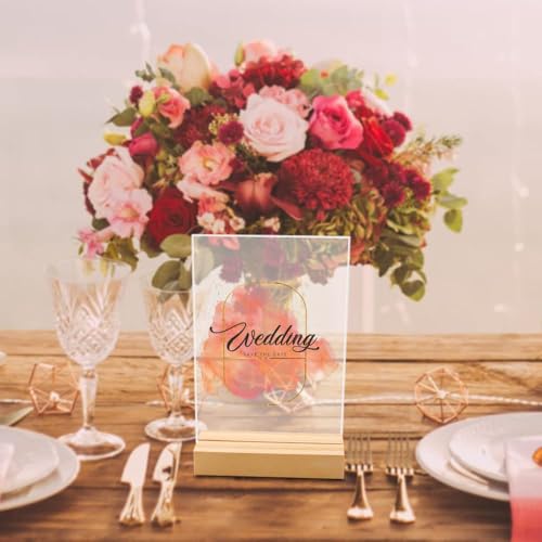 - Dimension: The package comes with 8 sets of acrylic table number sign.Each acrylic sign measures 4" x 6"/102mm x 152mm,approx. 0.12"/3mm in thickness.The wood stands measure 4" x 1.38" x 0.71"/102mm x 35mm x 18mm and the groove is about 1/8" / 32mm.Easy to assemble and match perfectly