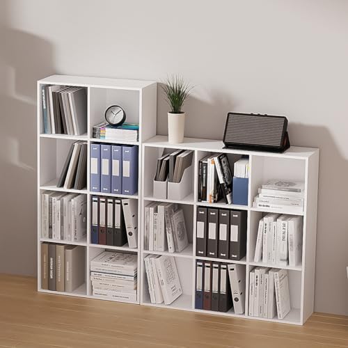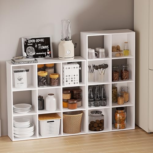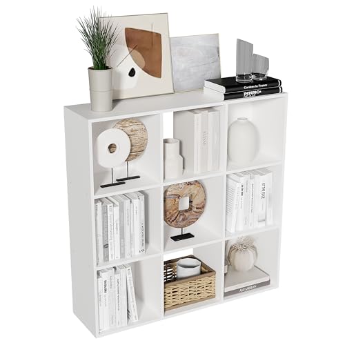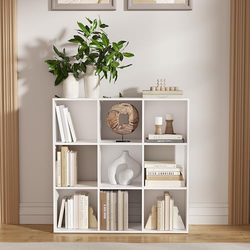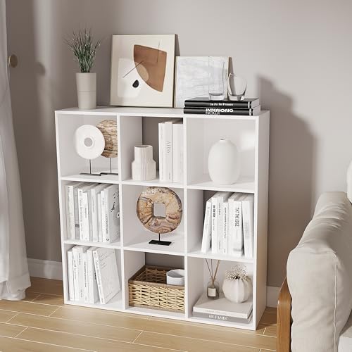 NewBeth - Cube Storage Organizer,Wood Organizer with Open Back,3 Tire Bookcase,Open Bookshelf for Home Office Living Room (White, 9-Cube)