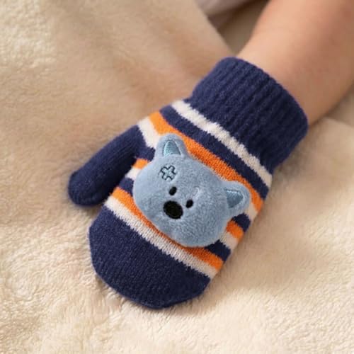 Generic - Newborn Baby Winter Gloves Raised Stuffed Animals Knitted Paws Soft Hand Warmer Striped Colors Elastic Wrist Band