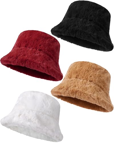 Newcotte - نيوكوت قبعة باكيت شتوية من الفرو الصناعي للصيادين من 4 قطع، قبعة زغبية دافئة للنساء والرجال، قبعة صياد السمك دافئة من الفرو هدية للطقس البارد والرحلات الكاجوال والرياضة والتزلج