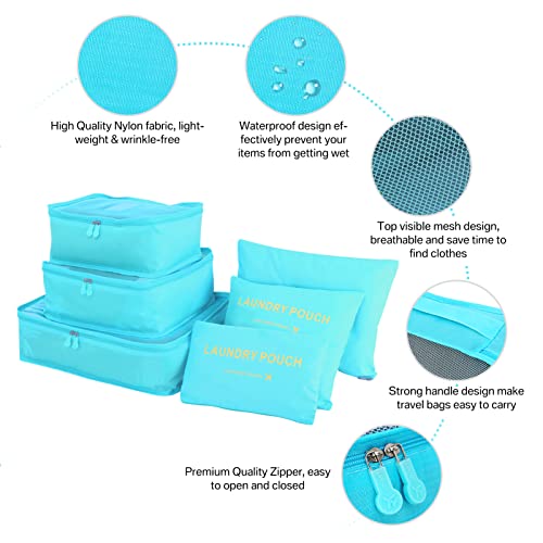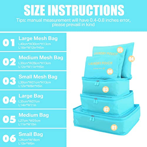 Neween - Neween 6 Set Packing Cubes,Travel Luggage Packing Organizers Packing Cubes for Suitcase (Light Blue)
