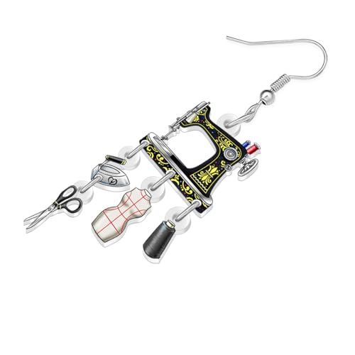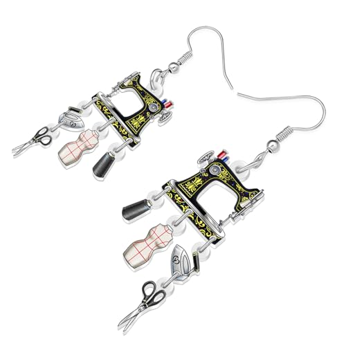 NEWEI - NEWEI Acrylic Vintage 70s 80s Sewing Machine Dangle Earrings Cute Handmade Jewelry Sewing Gifts for Women Mom Tailor Quilting Lovers Accessories