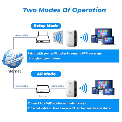 - 【Compatible with Up to 45 Devices】This WiFi extender booster with Ethernet port supports up to 45 devices, including computers, tablets, doorbells, webcams, and smart wearable devices. You can easily expand your network connection, ensuring seamless connectivity for all devices. Our WiFi booster is the perfect choice for individuals seeking to connect multiple WiFi devices.