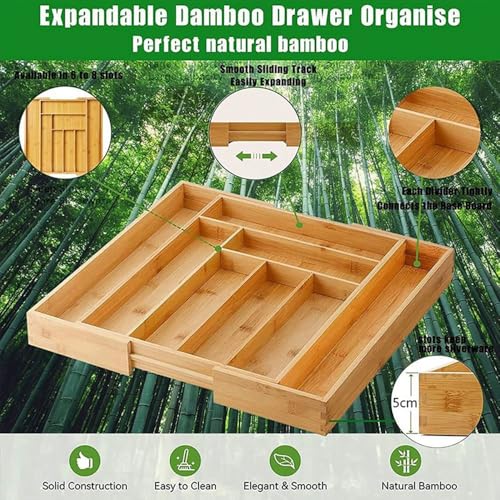 - Premium quality material: our bamboo cutlery tray has a neat and beautiful appearance, the organiser is made of durable bamboo that can withstand daily use and wear. Suitable for all types of cutlery. Due to its robust construction, it can be used for a long time.