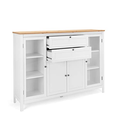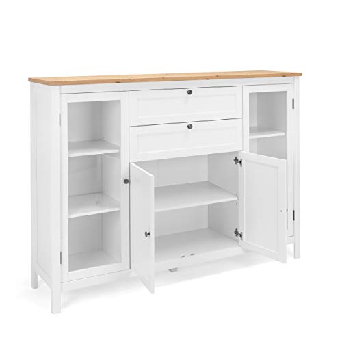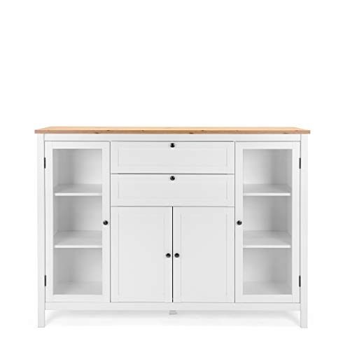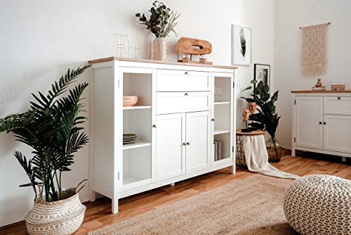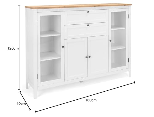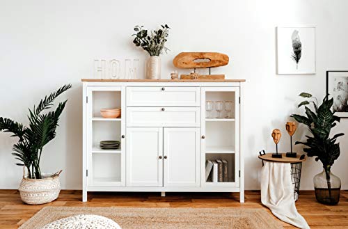 Newfurn - Newfurn Highboard White Wild Oak Chest of Drawers Vintage Country House - 160 x 120 x 40 cm (W x H x D) - Cabinet Sideboard - [Eireen.Four] Living Room Bedroom Hallway Dining Room