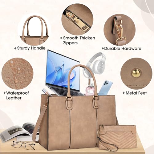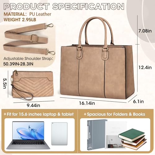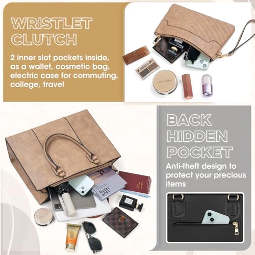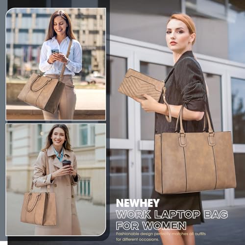 NEWHEY - نيووي شنطة لابتوب للنساء مقاس 15.6 انش كبيرة مع شنطة كلاتش من جلد البولي يوريثين، شنطة كتف ماسنجر للنساء مع جيب لاب توب للمدرسة والمكتب والسفر والعمل