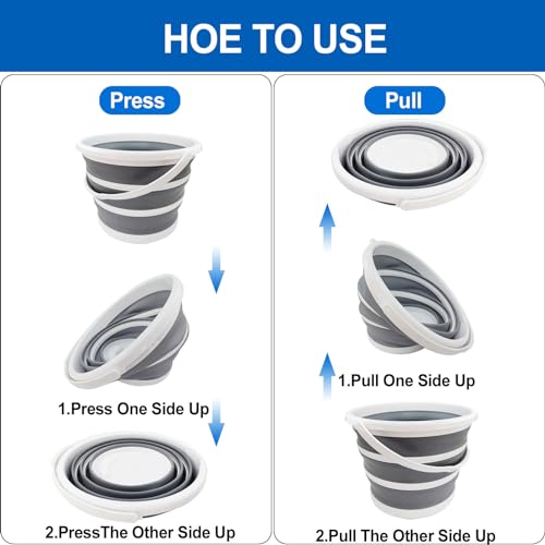 - 【Easy to use】Designed with a hanging ring for easy storage and a sturdy, ergonomically designed handle that makes it easy to carry. The bottom has grooves to make it easier to pour out liquids. This collapsible bucket is ideal for home use, camping, parties, and even backpacking and biking.