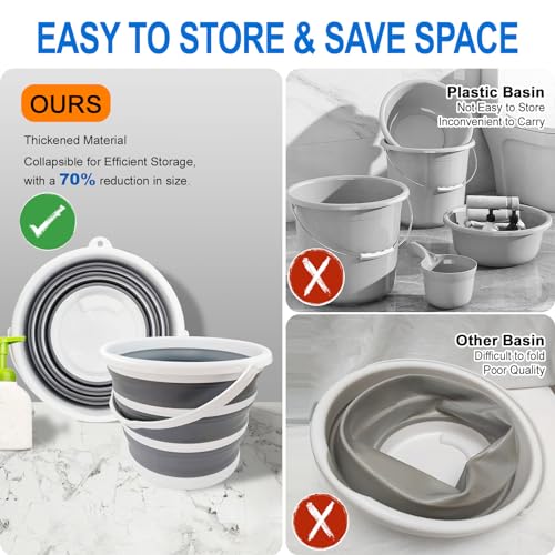 - 【Made of high quality polypropylene+thermoplastic rubber (BPA free)】The foldable wash basin is made of the latest PP+TPR material, which is BPA-free, safe, and reliable. The high-quality materials ensure wear and tear resistance. The sturdy construction provides stability, making it an ideal choice for heavy duty use. It also ensures that the bucket will last a long time.