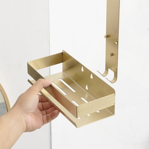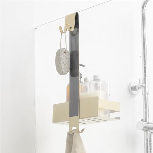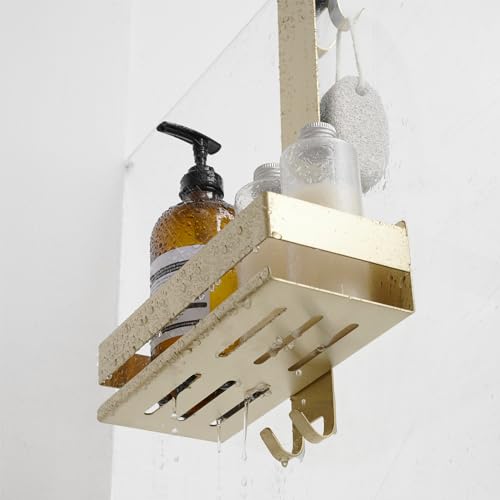 NEWRAIN - NEWRAIN Shower Caddy Hanging, Over Door Stainless Steel Shower Shelf, No Drilling Bathroom Storage for Glass Door with Hooks, Gold
