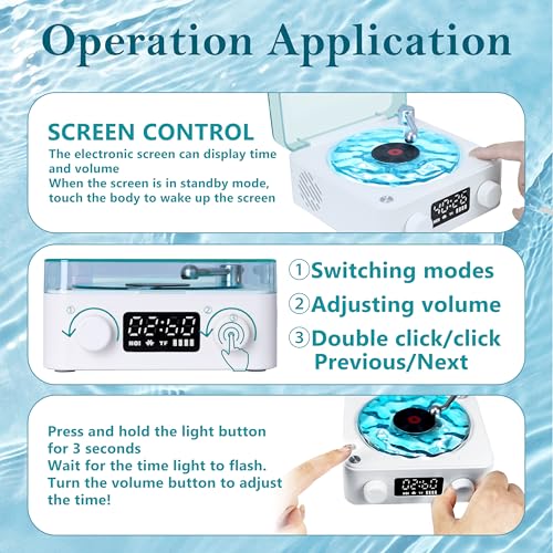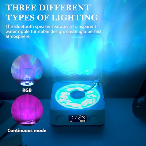 - 【Waves Vinyl Bluetooth Speaker】The vintage portable Speaker Bluetooth with a transparent water ripple turntable design, Featuring three different types of lighting The Waves retro turntable creates the perfect atmosphere with adjustable ambient lighting in RGB, Breathing, or Continuous modes.