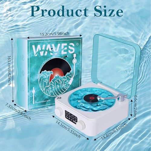 - 【Vinyl record player design】Wireless Bluetooth connection, 360° stereo sound.A Unique and Mesmerizing Visual Experience That Beautifully Combines the Elements of Nature and Technology. Featuring an Immersive Ocean-Inspired Design and Soothing Nature Sounds, adding texture and sophistication to your auditory experience.