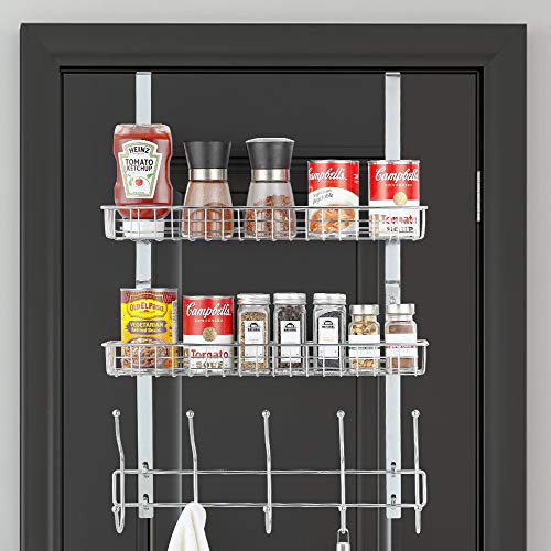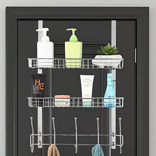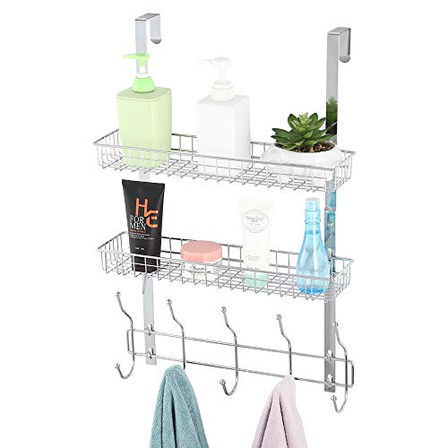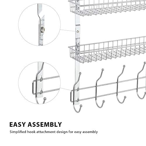 Nandae - NEX Over The Door 5 Hook Shelf Organizer Hanger Spice Rack with 2 Mesh Basket Storage Rack Spice Rack for Bathroom Kitchen Storage Shelves Toiletries, Chrome