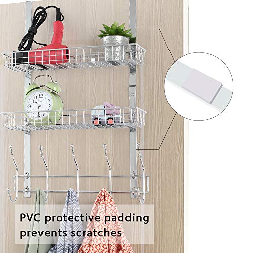 - 🔥【Durable & Practical】The door hanger with 5 hooks and 2 basket to create an extra space of your door, Keep your bedroom, bathroom or kitchen neat and organized.