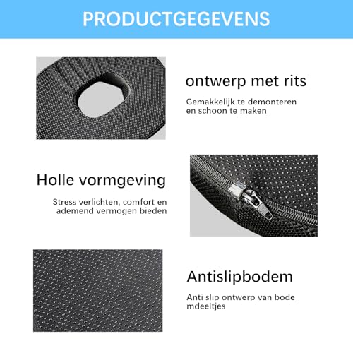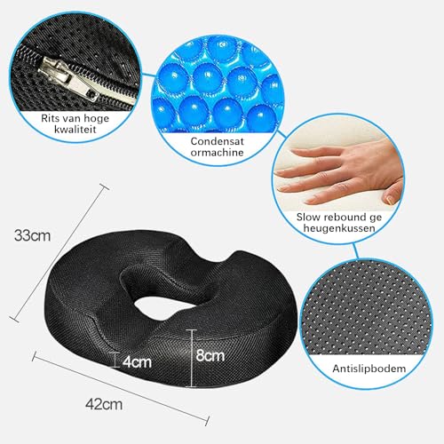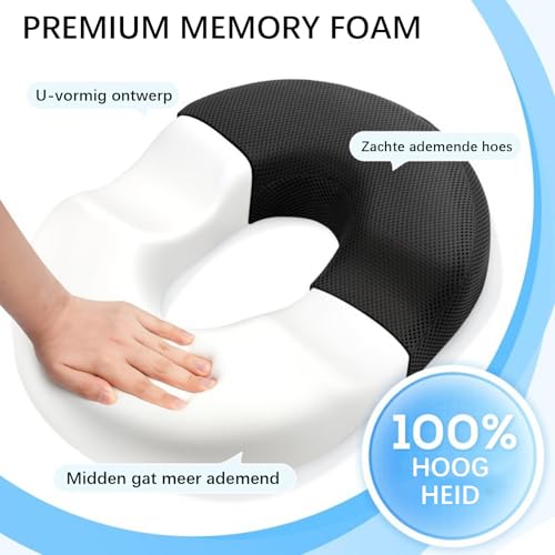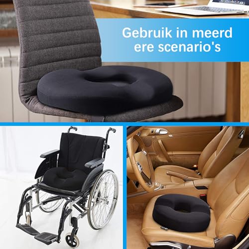 NEXROLA - Hemorrhoid Seat Cushion 40 x 34 x 6 cm, Black, Memory Foam, Non-Slip Floor, Washable Cover - Ideal for Hemorrhoids, Back Pain, etc.
