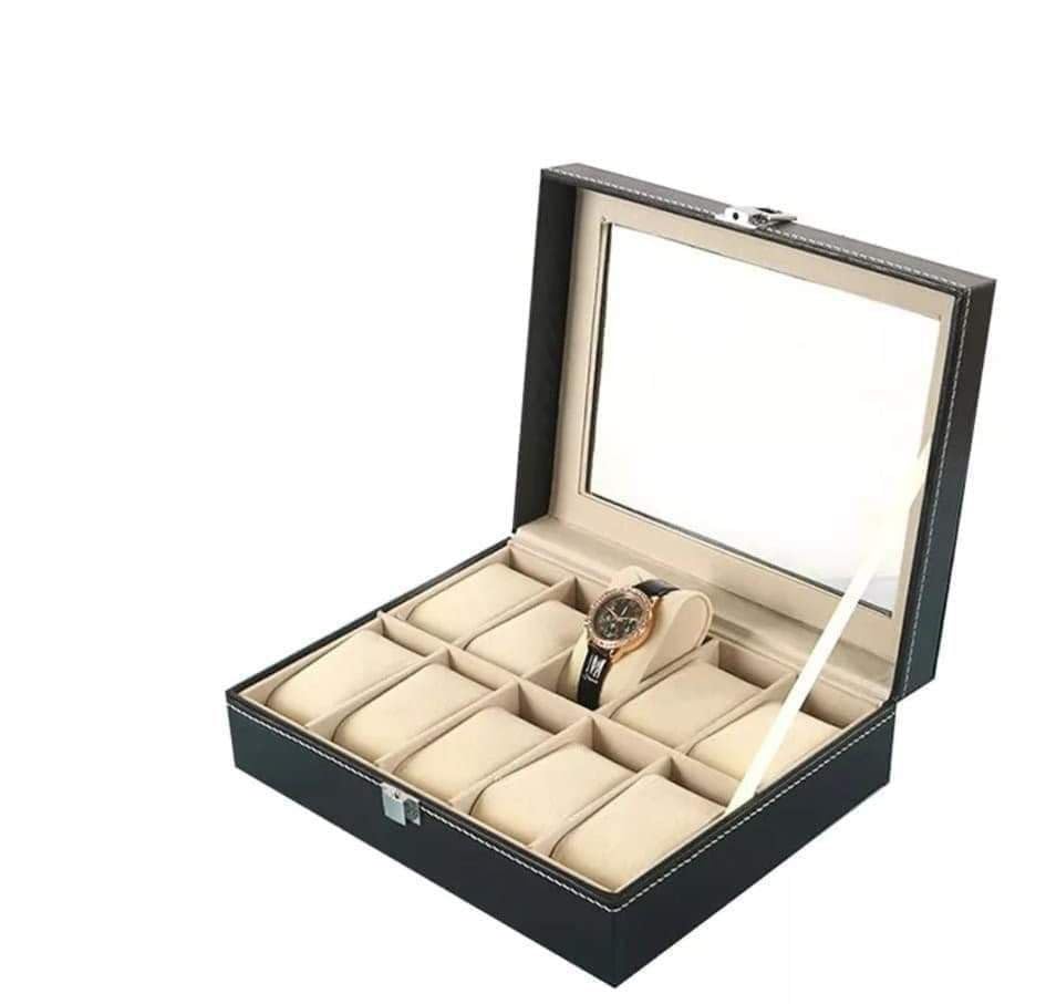- [Luxury & Practical Design] : The box features 12 padded compartments to store watches or jewelry, giving you perfect organization with a sleek and stylish look.