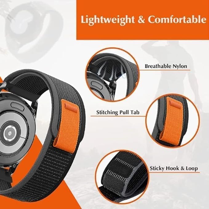 Next store - Next store 22mm Nylon Strap Compatible with Huawei GT2 | GT2 Pro | GT3 | GT3 Pro | 4 GT, Galaxy Gear S3 46mm, Amazfit GTR3 | GTR4 (Grey & Orange)