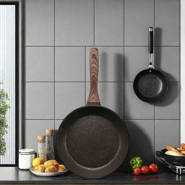 Next store - مقلاة جرانيت للقلي والطهي الصحي بسطح غير لاصق ومقبض خشبي عازل للحرارة عالية التحمل مقاس 26سم من Next Store
