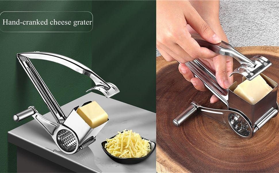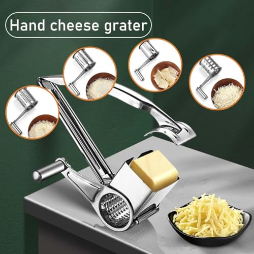 Next store - Next Store 3 in 1 Manual Vegetable Slicer & Rotary Cheese Grater, Fruit Cutter with Sharp Stainless Steel Blades and Mounting Base, Safe and Fast Food Preparation