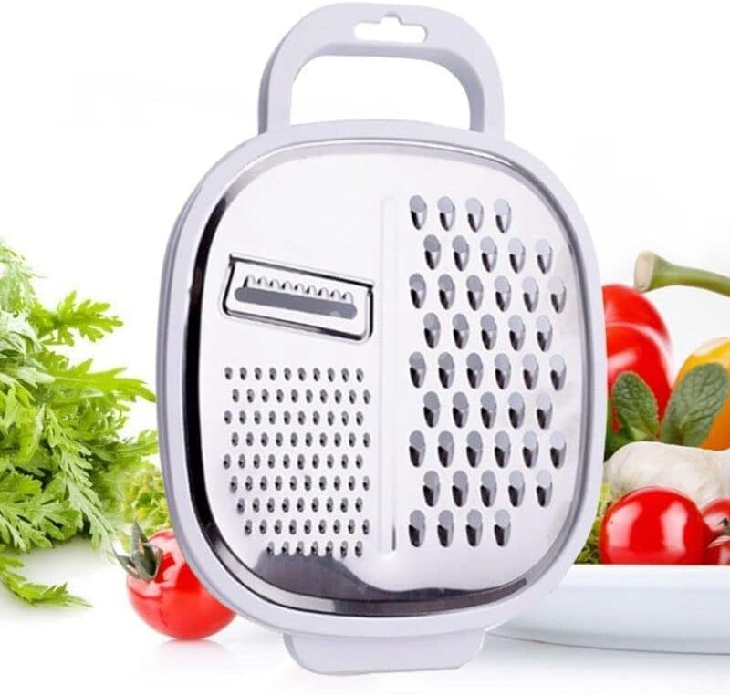 - 3 in 1 (Multi-purpose): a smart tool that combines 3 essential functions in one; it acts as a soft grater, coarse grater and slice cutter, to eliminate the crowd of tools and saves space in your kitchen drawer.