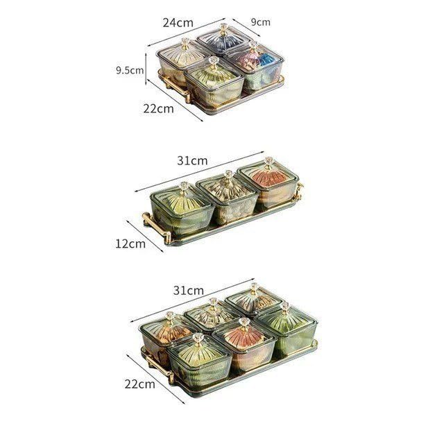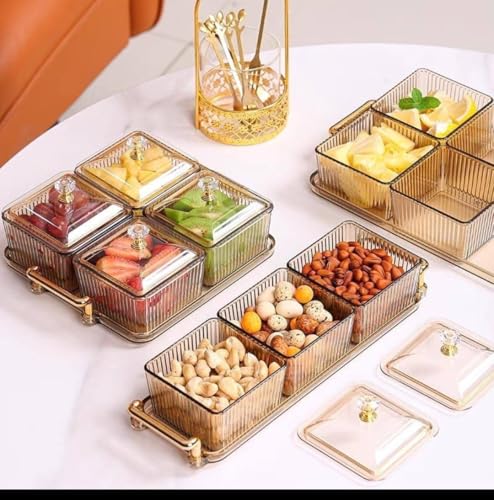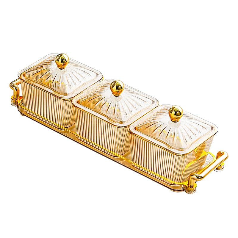 Next store - Next Store 3 Piece Premium Acrylic Tasali Set with Lid and Crystal Handle with Acrylic Tray with Gilded Handle for Serving Fruit or Tasali Elegantly on the Dining and Table (Honey)