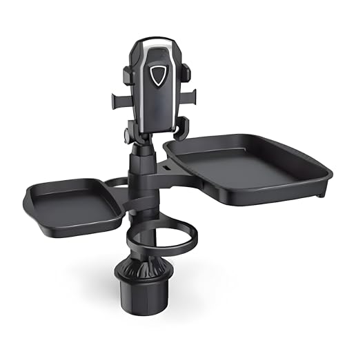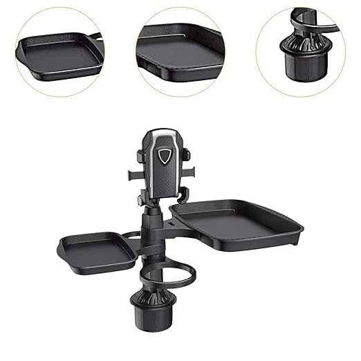 - [UNIVERSAL VERSATILE DESIGN:] 5 in 1 product that combines cup holder, mobile holder, and rotating food tray, perfect for large cars, trucks, and long trips.
