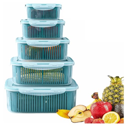 Next store - طقم علب ثلاجة محكمة الغلق مع مصفاة 5 قطع، من Next Store حاويات حفظ طعام بلاستيكية صحية للميكرويف وغسالة الأطباق، منظم خضروات وفواكه مع مقبض وإطار سيليكون