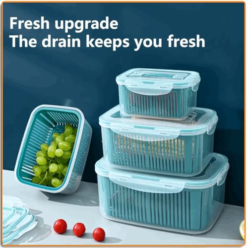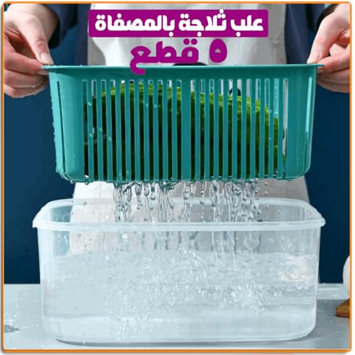 - مصفاة داخلية مبتكرة: كل علبة مزودة بـ مصفاة داخلية خاصة لتصفية الخضروات والفواكه من المياه الزائدة، مما يعمل كفاصول ومانع للرطوبة ويحافظ على طزاجة طعامك لفترة أطول ويمنع تلفه.