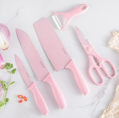 Next store - طقم سكاكين جرانيت 5 قطع، 3 سكاكين مقاسات مختلفة مع مقشرة ومقص، شفرات حادة جدًا لأداء دقيق، تصميم عملي ومتين للاستخدام اليومي في المطبخ من Next Store