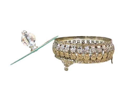 - [تصميم فاخر وأنيق]: البونبونيرة مصنوعة يدويًا من معدن مطلي باللون الذهبي أو الفضي مع غطاء زجاجي شفاف، ما يمنحها مظهرًا راقيًا وفخمًا. تضيف لمسة جمالية لأي طاولة أو رف، وتجمع بين الأناقة والفخامة، لتكون قطعة ديكور مميزة وعملية في نفس الوقت للاستخدام اليومي والمناسبات الخاصة.