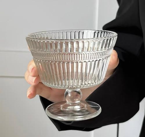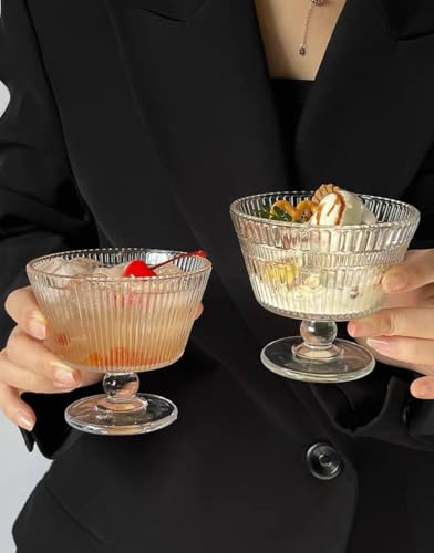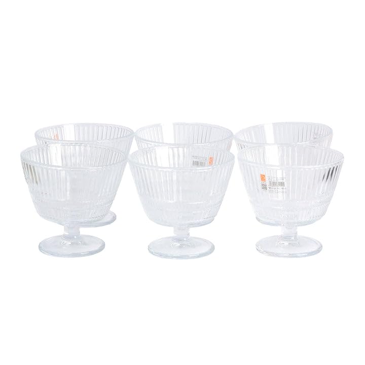 Next store - طقم كاسات آيسكريم وحلوى زجاج 6 قطع، من Next Store بولات تقديم خشاف وفواكه 200 مل بتصميم مخطط كلاسيكي، أكواب زجاجية بقاعدة للضيافة والتشيز كيك