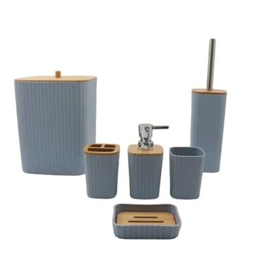 Next store - Next Store 6-Piece Complete Bathroom Set, Stylish Bamboo Lid, Includes Trash Can, Toilet Brush with Holder, Liquid Soap Dispenser, Toothbrush Holder, Tumbler, Soap (Grey)