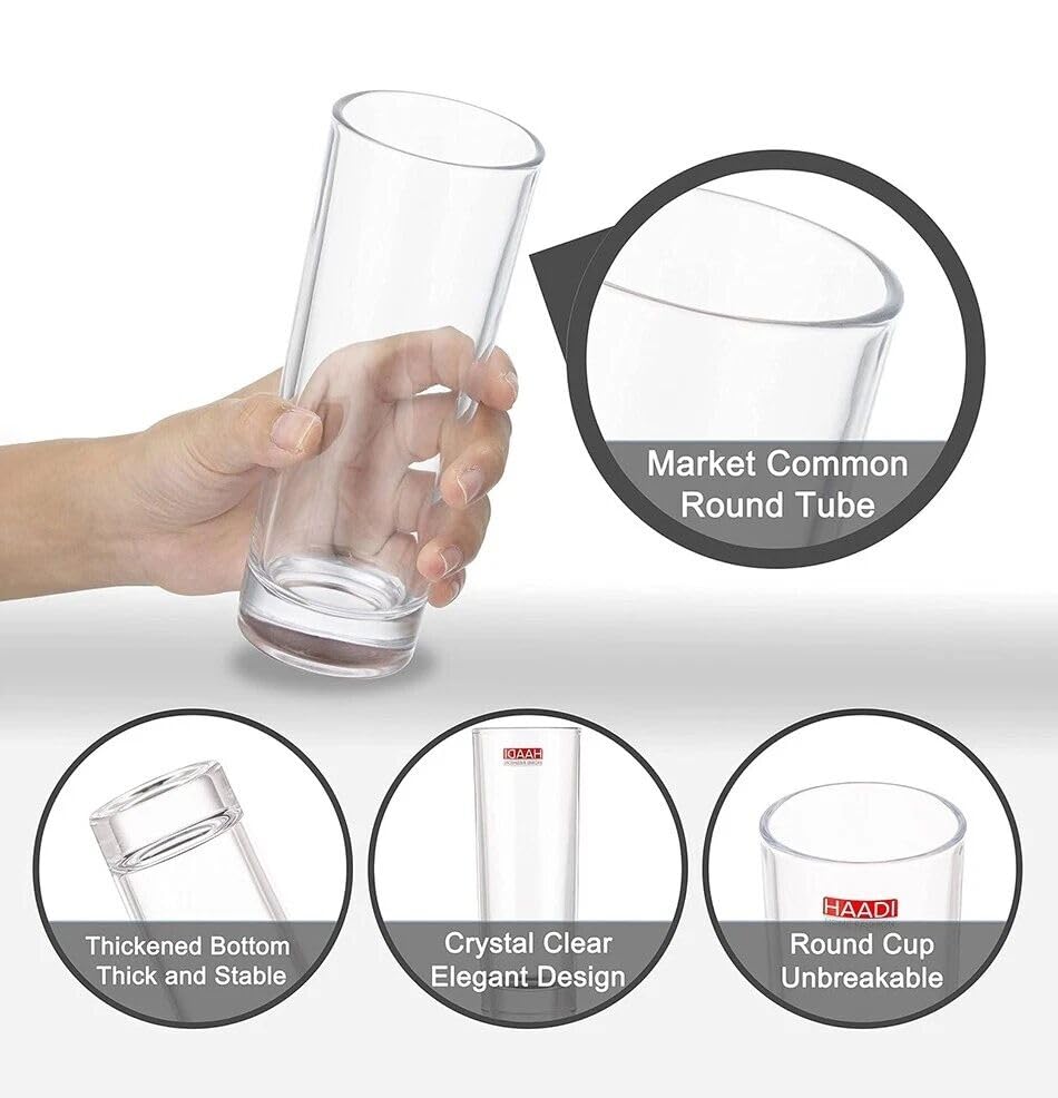 - سعة عملية (275 مل): يأتي كل كوب بسعة تقريبية 275 مل، وهو الحجم المثالي للاستخدام اليومي لتقديم الماء، المشروبات الغازية، والعصائر على الغداء أو العشاء دون أن يكون الكوب ثقيلاً أو ضخماً.