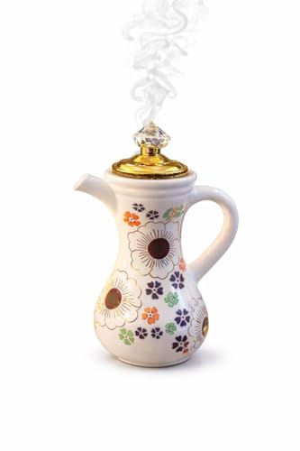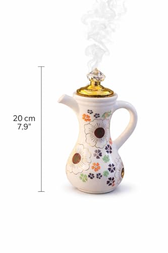 Next store - Next Store Arabic Oud Incense Burner for Perfuming Majlis, Traditional Design, Dallah Shape, Full Porcelain with Plate and Metal Lid with Crystal Handle, Height 20 cm