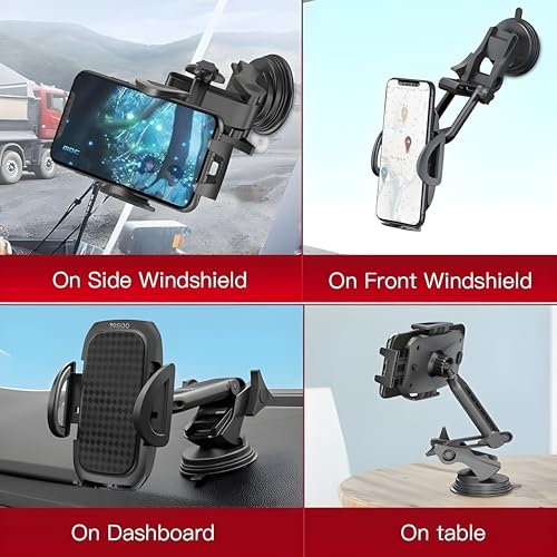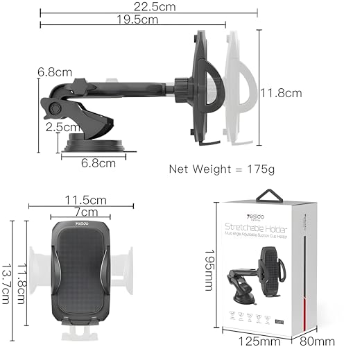 - [تثبيت قوي بقاعدة شفط محكمة:] : مزوّد بقاعدة شفط عالية القوة تلتصق بإحكام على الزجاج الأمامي أو التابلوه، لتثبيت ثابت لا يتأثر بالاهتزاز أو الحركة أثناء القيادة، مما يوفّر تجربة استخدام آمنة ومستقرة.
