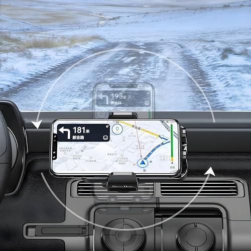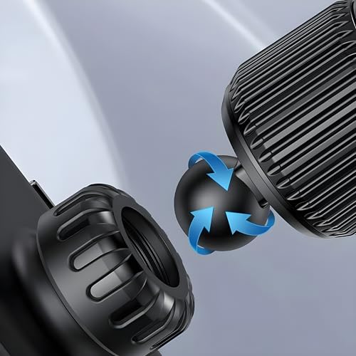 - [رأس دوار 360 درجة لرؤية مرنة:] : يوفر رأس الحامل إمكانية تدوير الهاتف بزاوية كاملة 360 درجة، مما يسمح باستخدامه أفقيًا أو عموديًا حسب الحاجة، لرؤية مثالية أثناء القيادة.