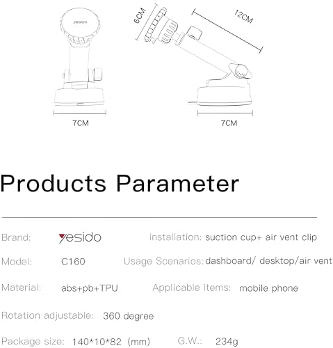 - [Ventilation or Tap Double Mount]: The C160 gives you the freedom to choose the most suitable installation, whether on the vent or on your car dab using the strong suction base. This dual design ensures perfect compatibility with various cars and gives you high stability no matter what driving conditions.