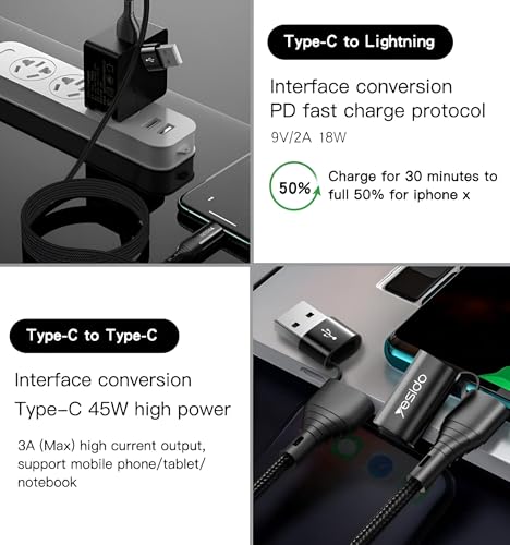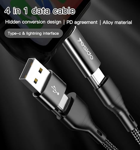 - [1. 4 in 1 MULTI-FUNCTIONAL Cable]: Designed to offer a flexible application experience thanks to its 4-in-1 design, this cable includes different ports to connect a wide variety of devices. Whether you use USB-A, USB-C, Leghtning or Micro USB, the cable provides everything you need without the need to carry multiple cables.